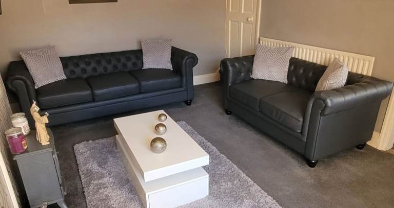 Posting for 1+ yearsBlack leather sofas 3piece