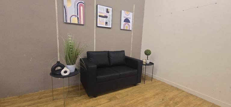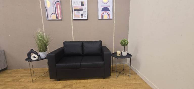 BLACK SMALL LEATHER 2 SEATER DELIVERY AVAILABLE
