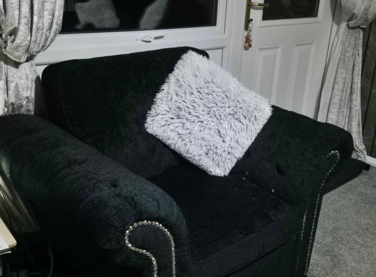 Black sofa with studs only 7 month old quick sale comes with a 3 year warranty collection only as we don’t drive