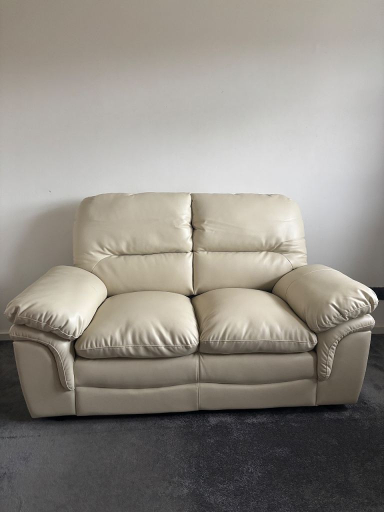 Posting for 8+ yearsBLACK & WHITE 3 SEATER LEATHER SOFA