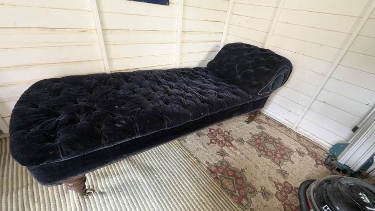 Posting for 7+ yearsBlue suede chaise longue