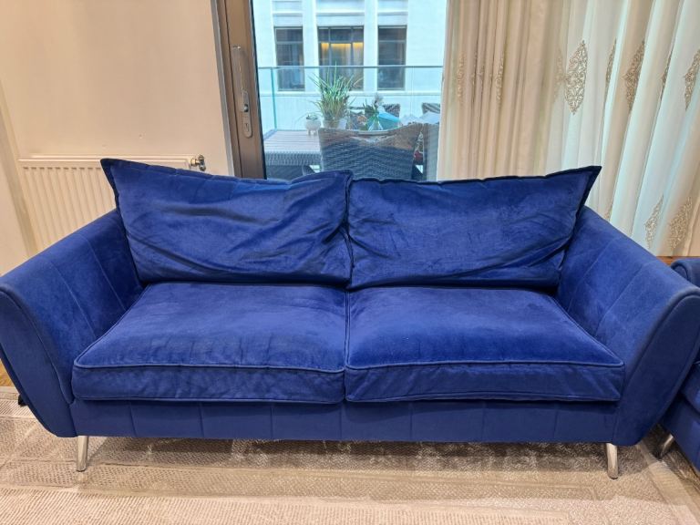 Posting for under a monthBlue Velvet 2-Seater Sofa – Excellent Condition