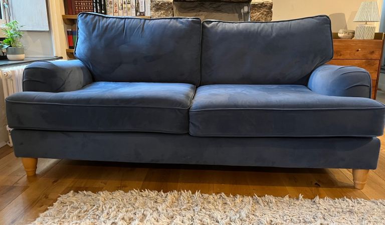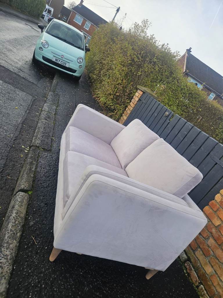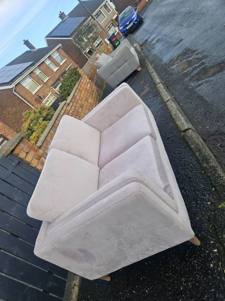 This blush pink velvet 2 seater sofa can be delivered in Belfast for no extra cost