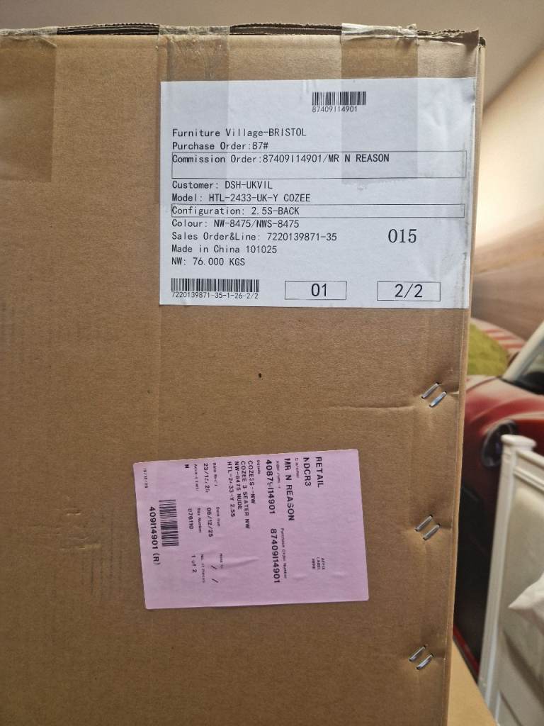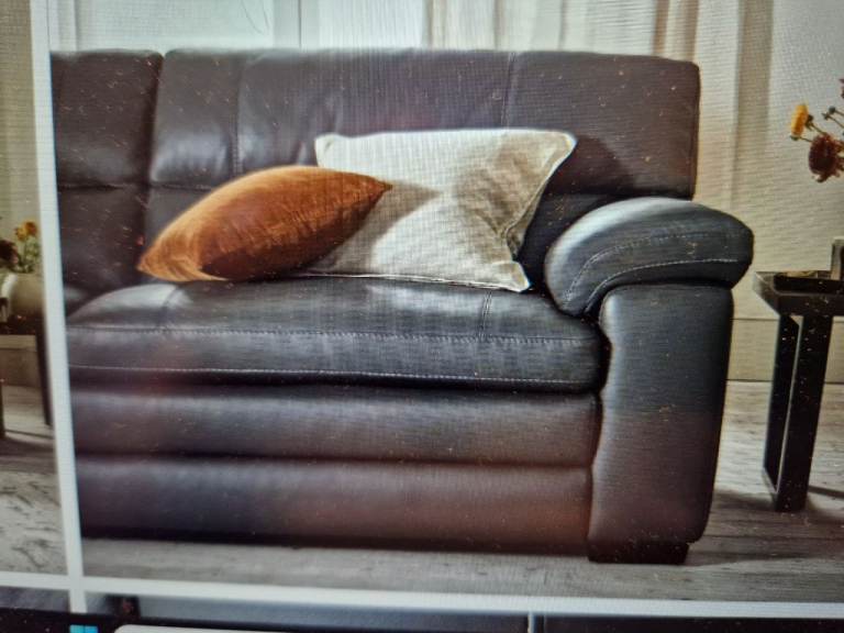 Brand new still boxed leather sofa purchased from furniture village still for sale for £1195. I did sit on the sofa in the showroom and it was definitely the most comfortable one. See photos for all the details of size etc. You can see the sofa comes in two boxes in my garage. My partner has a van so delivery maybe able to deliver depending on distance and time. I have not opened the boxes. It's a long story why it's for sale I can tell you if you purchase it. This is a genuine private sale I am not a business. Please feel free to ask any questions.