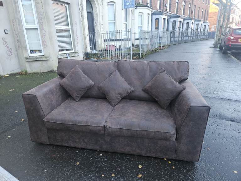 This brown fabric 3 seater sofa can be delivered in Belfast for no extra cost
