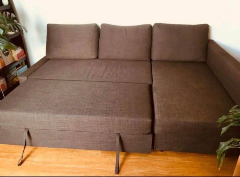 BROWN IKEA FRIHETEN CORNER SOFA BED WITH STORAGE - DELIVERY AVAILABLE TODAY