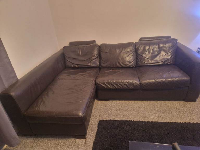 Posting for 6+ yearsBrown leather corner sofa