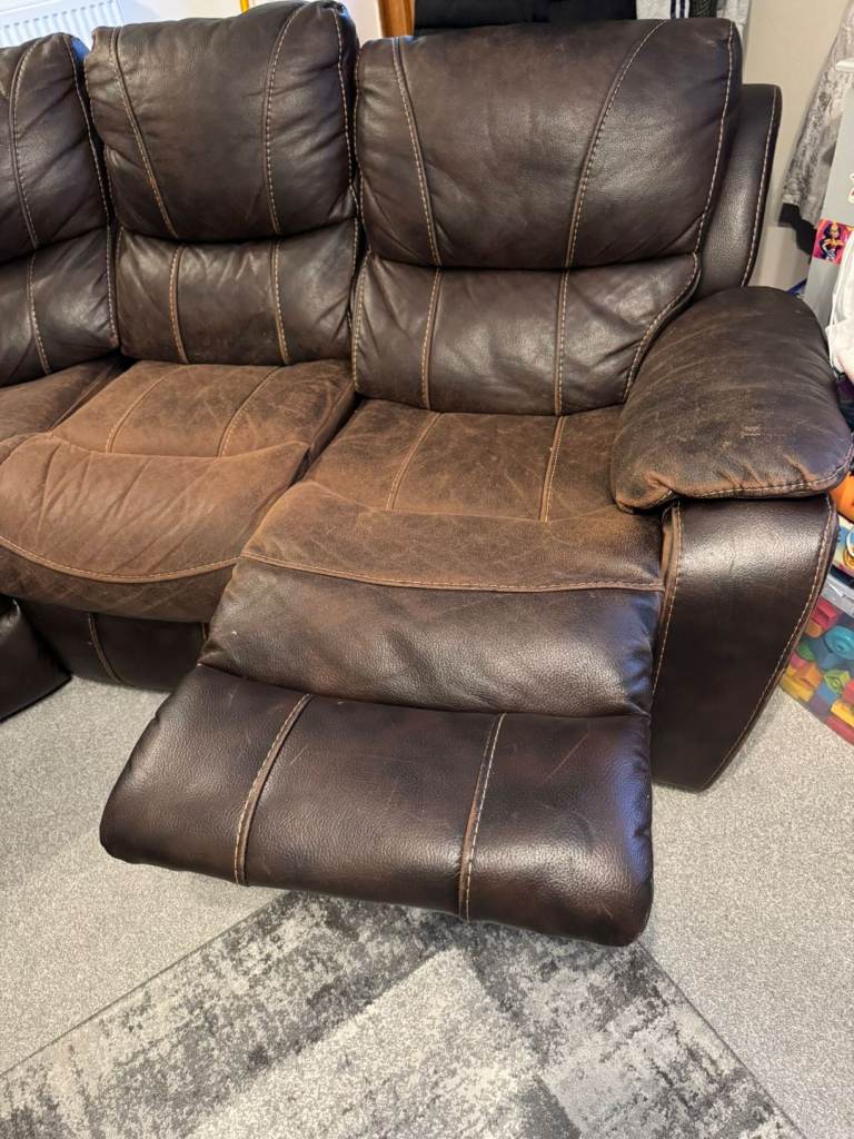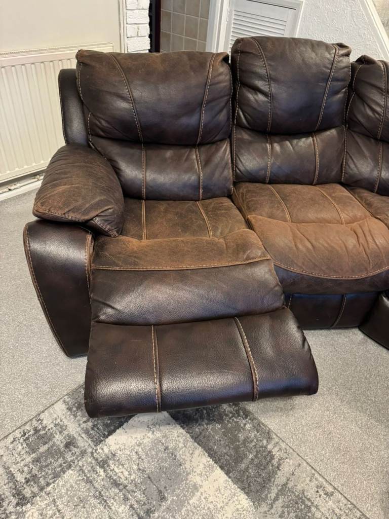 Posting for 11+ yearsBrown Leather Manual Recliner Corner Sofa