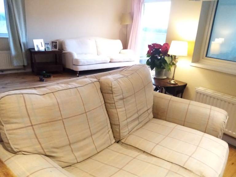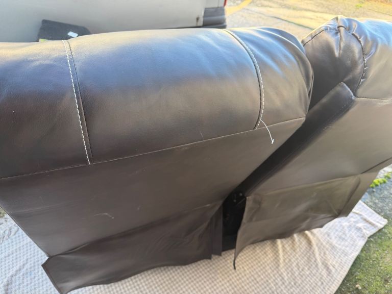 Posting for 13+ yearsBrown Leather Recliner x 2 seater sofa.