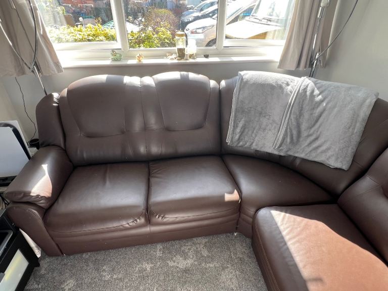 Brown Leather Corner Sofa – Great Condition – Comfortable & Stylish