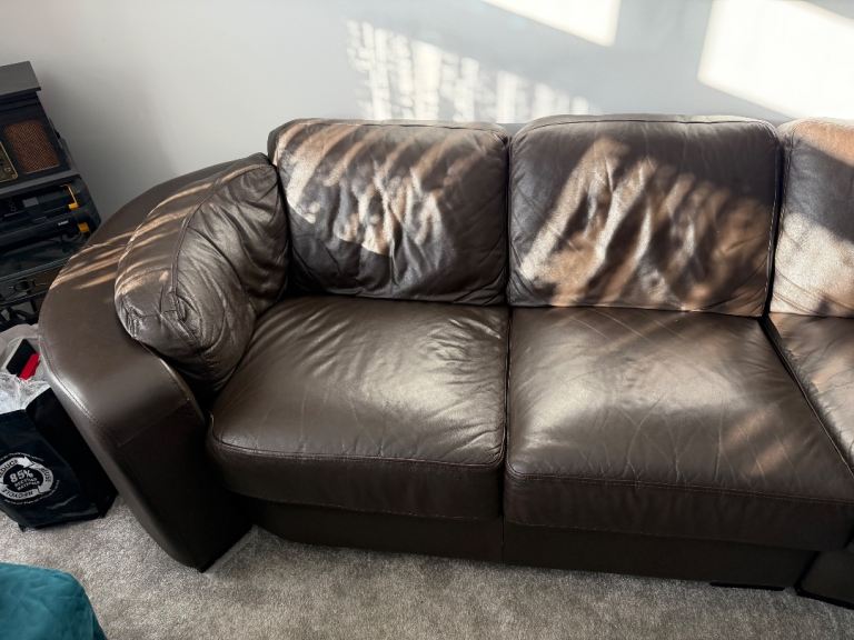 Brown leather sofa