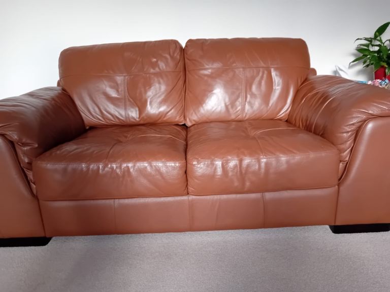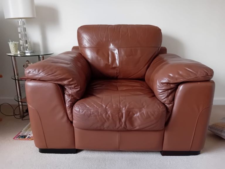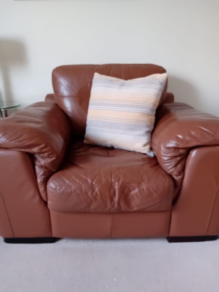 2 seater brown leather sofa & matching armchair.