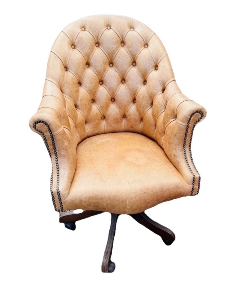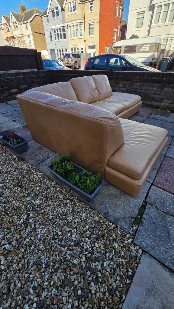 Brown leather sofa & armchair