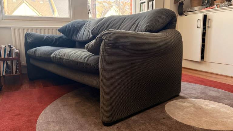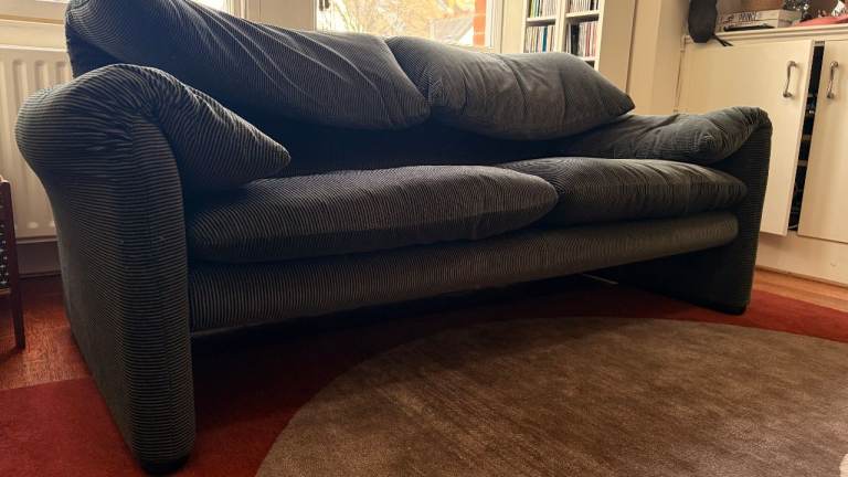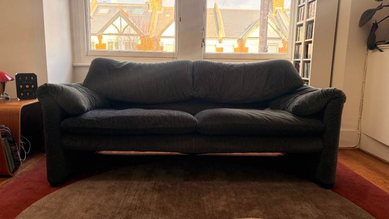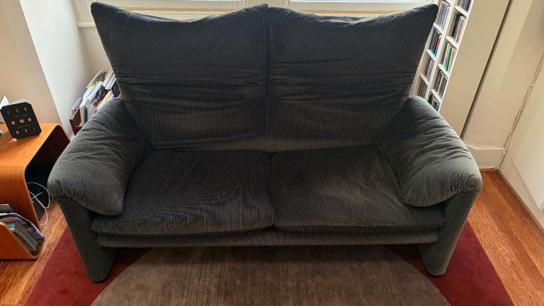 Cassina Maralunga 2 seater sofa - Anthracite/Grey striped velvet - original fabric