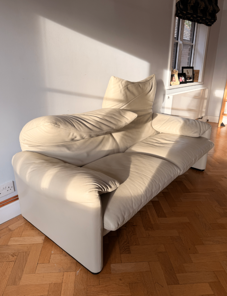 selling my Cassina Maralunga 2 seater sofa in off-white leather, its been loved and sad to see it go but doesn't fit our new home.