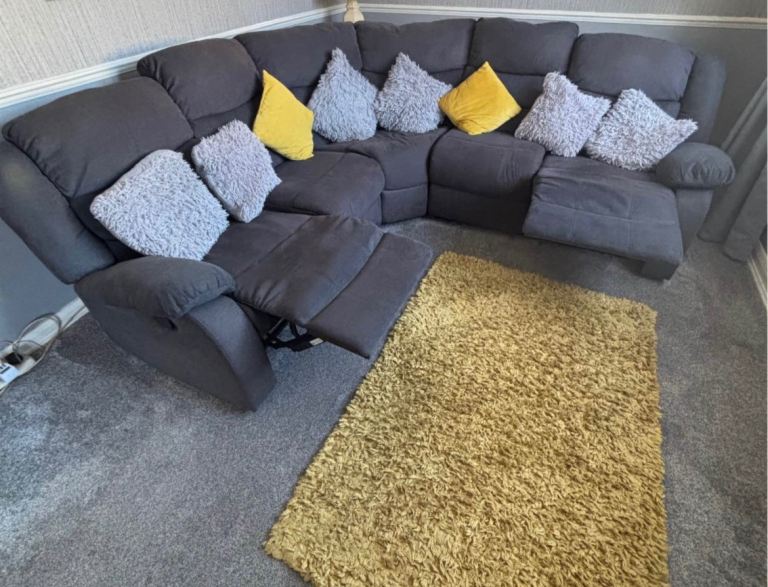 Charcoal Grey 5 Seater Recliner Sofa With 2 Recliner Armchairs - Delivery Available