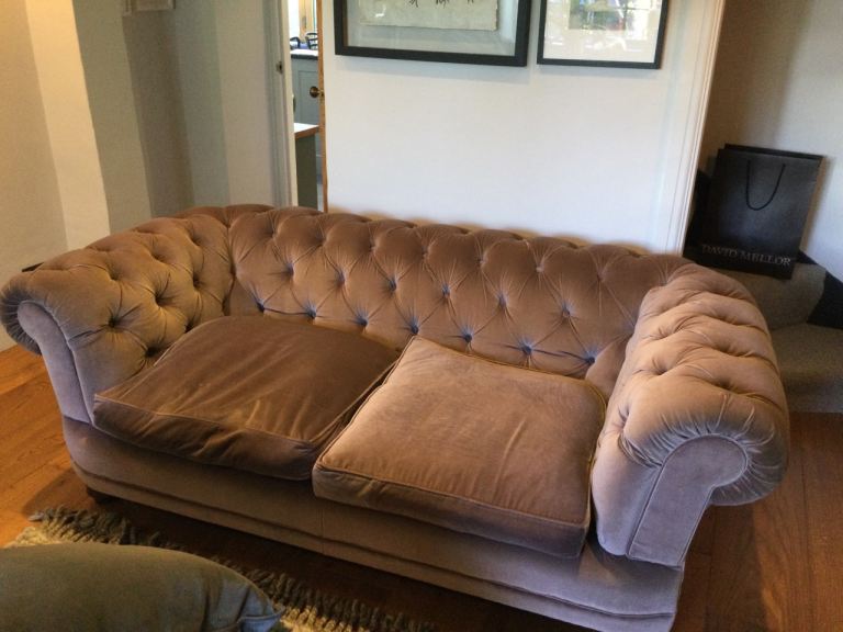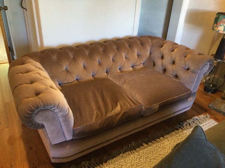 Taupe velvet Chesterfield sofa