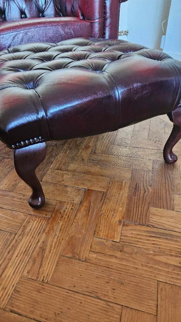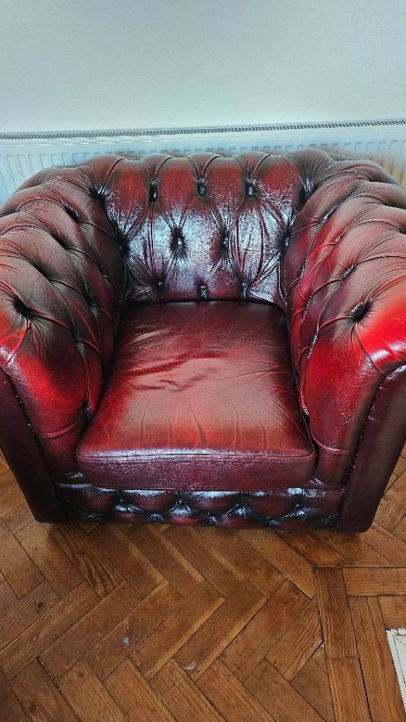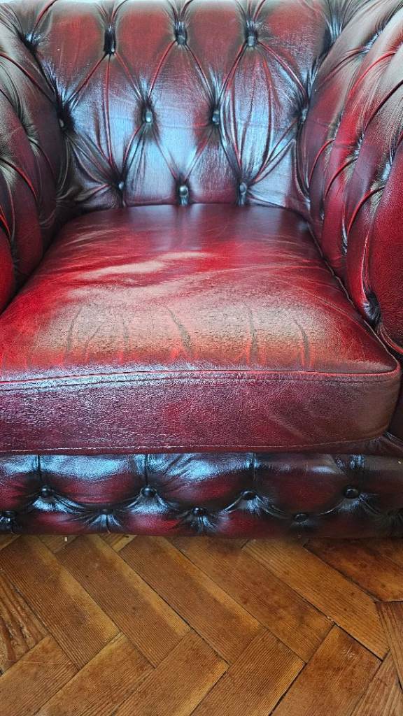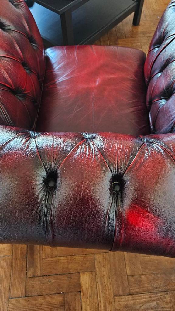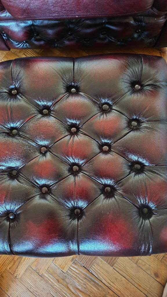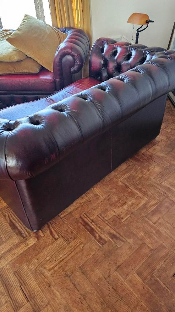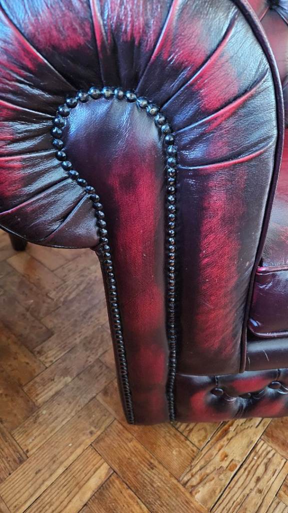 Gorgeous oxblood leather chesterfield sofas and chair.
