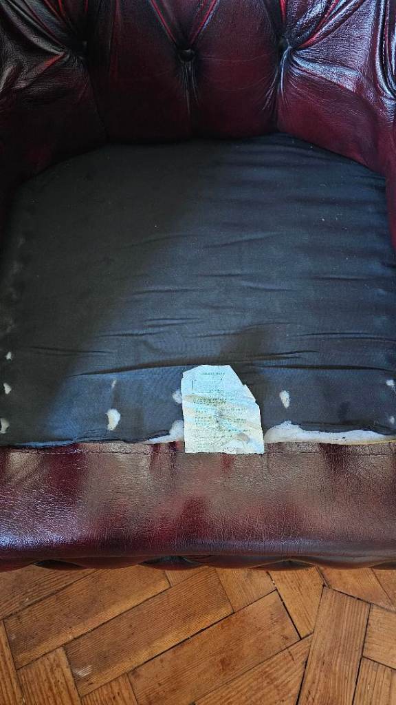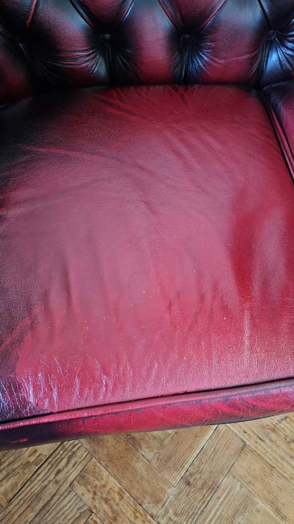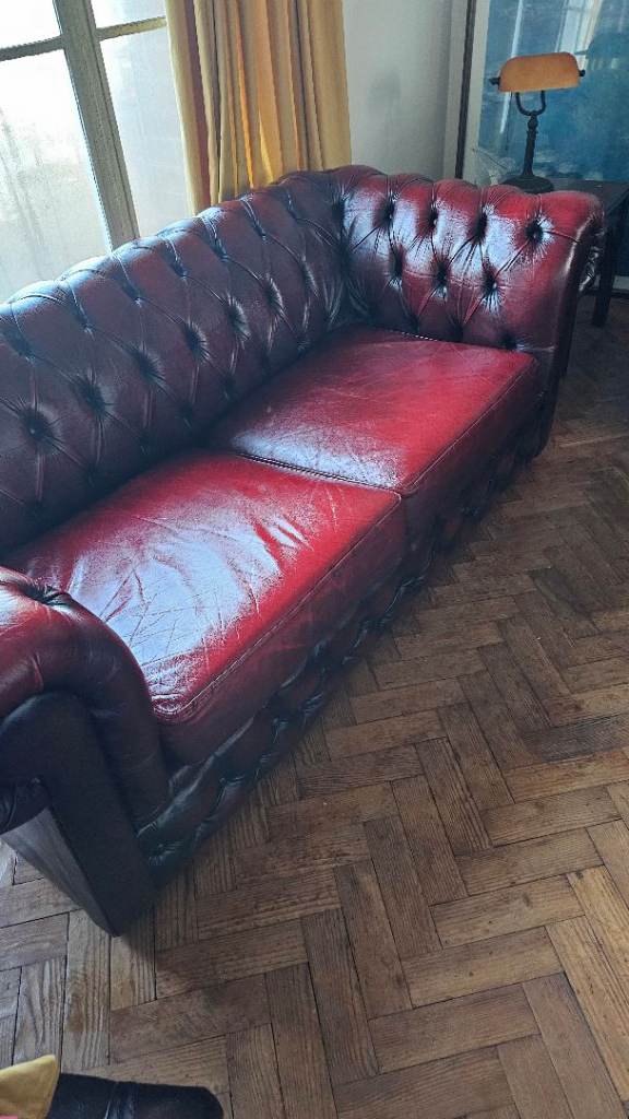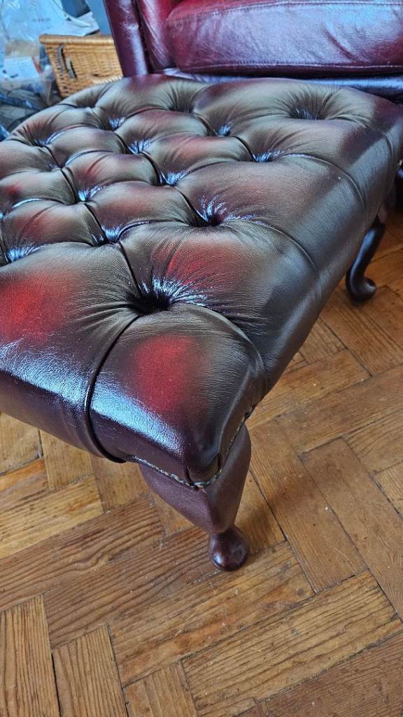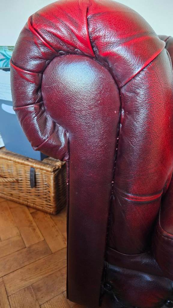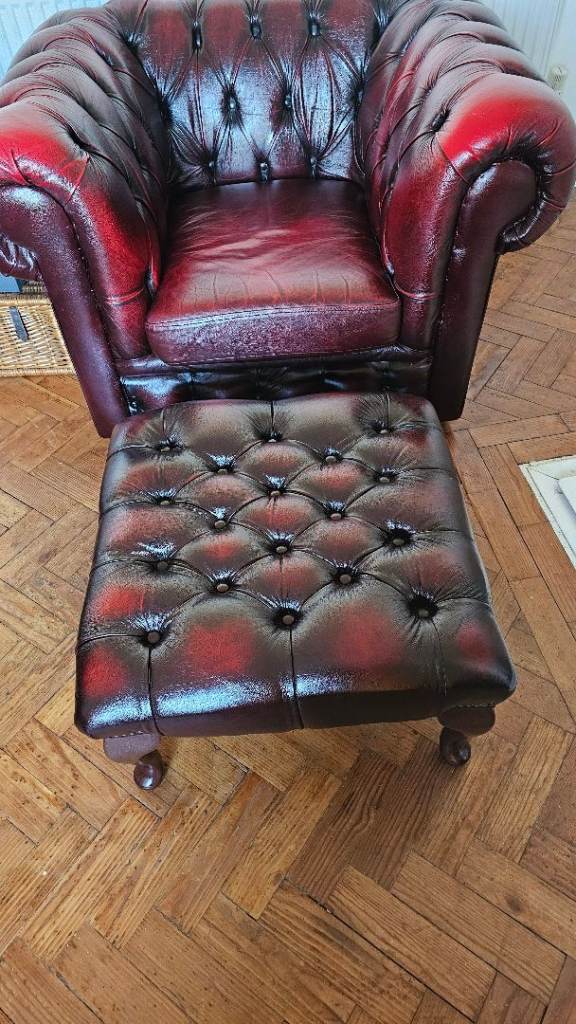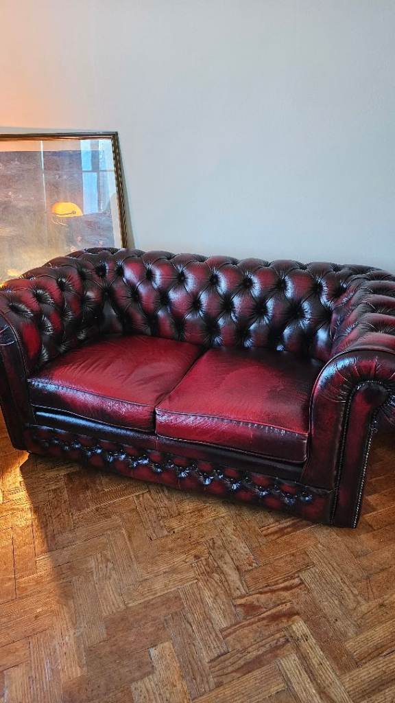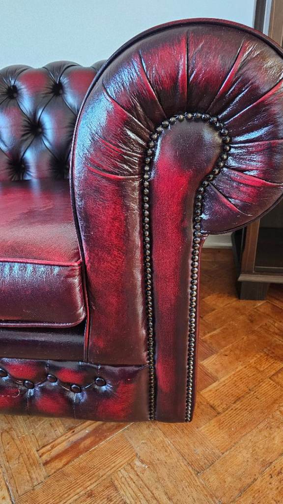 Gorgeous oxblood leather chesterfield sofas and chair.