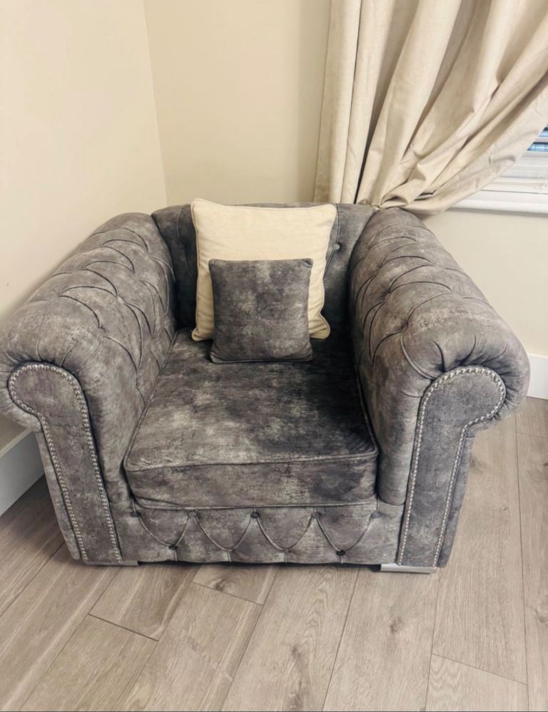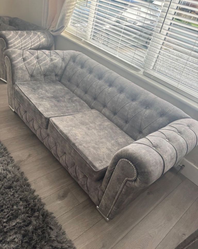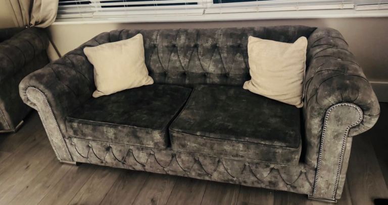 Grey chesterfield style fabric sofa