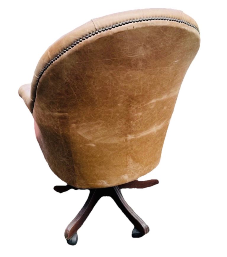 Chesterfield Style Tan Leather Office Swivle Chair On Castors