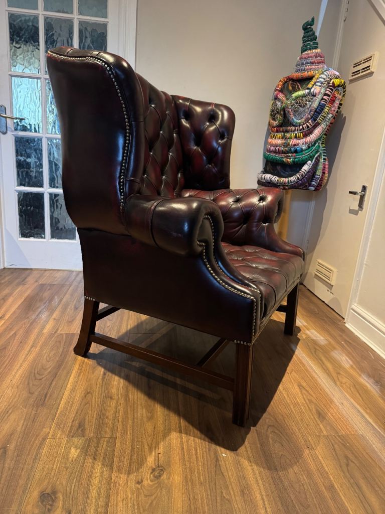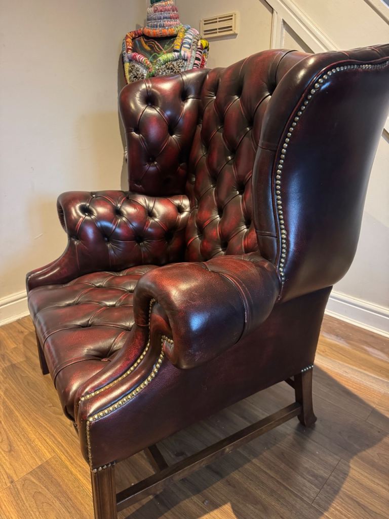 They are hand made for a King 🤴 and Queen these armchairs are a fantastic choice for those looking for a high-quality and timeless piece of furniture. there are no tears or holes in the well used soft leather