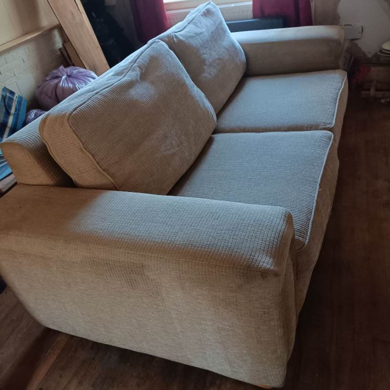 Posting for 4+ yearsComfortable Beige Two-Seater Sofa – Good Condition