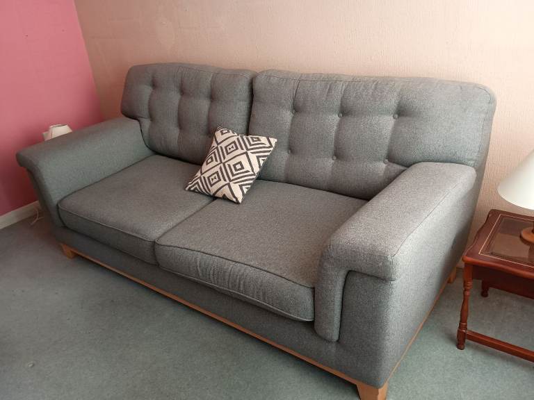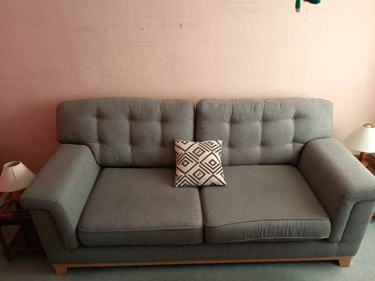 Posting for 9+ monthsComfortable Grey Fabric Sofa – Good Condition