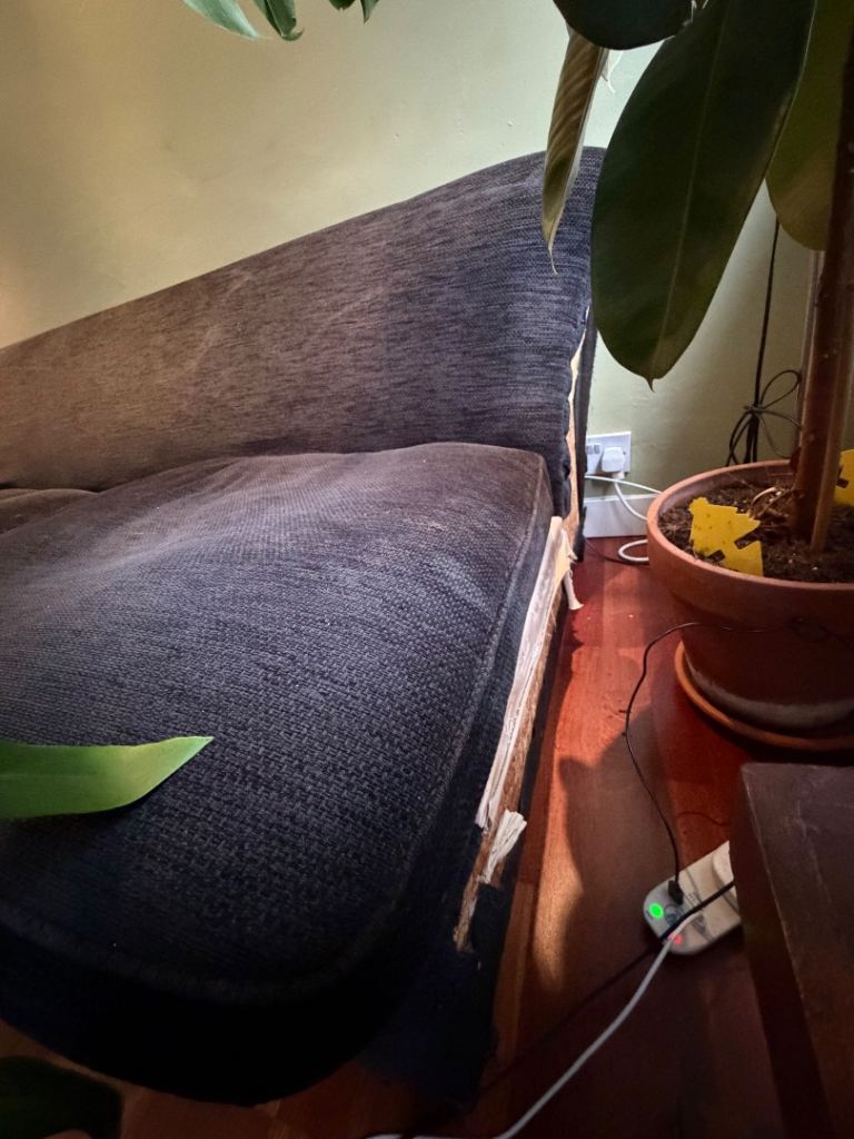Very comfy sofa / chaise longue , missing an arm as per pics