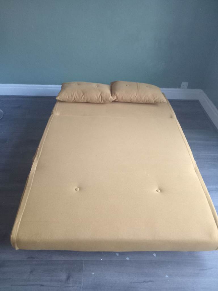 Posting for under a monthCompact Yellow Fabric Sofa Bed - Great Condition