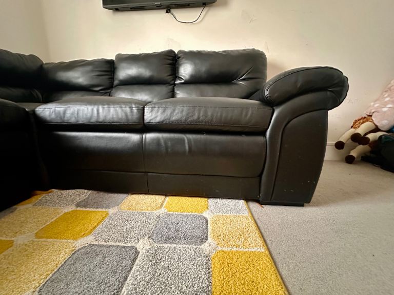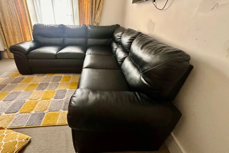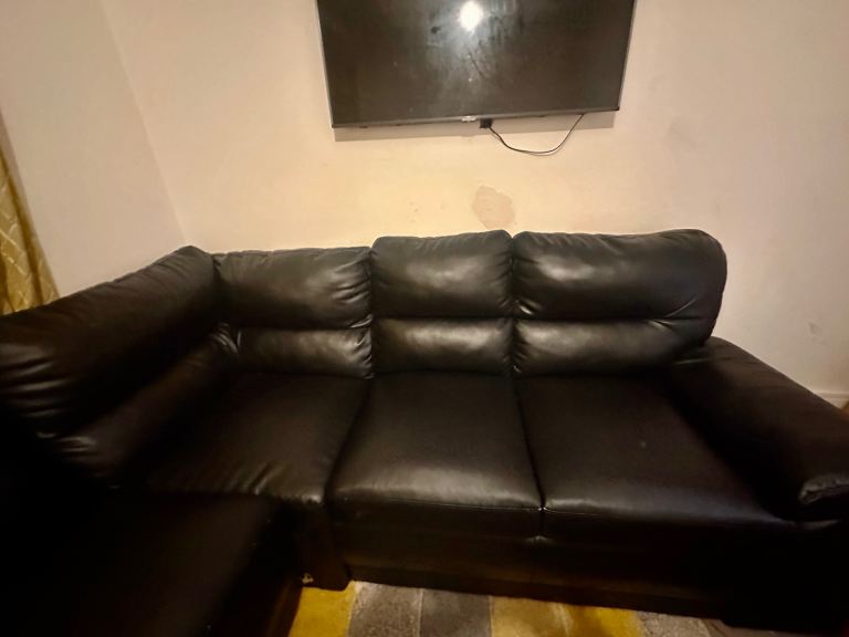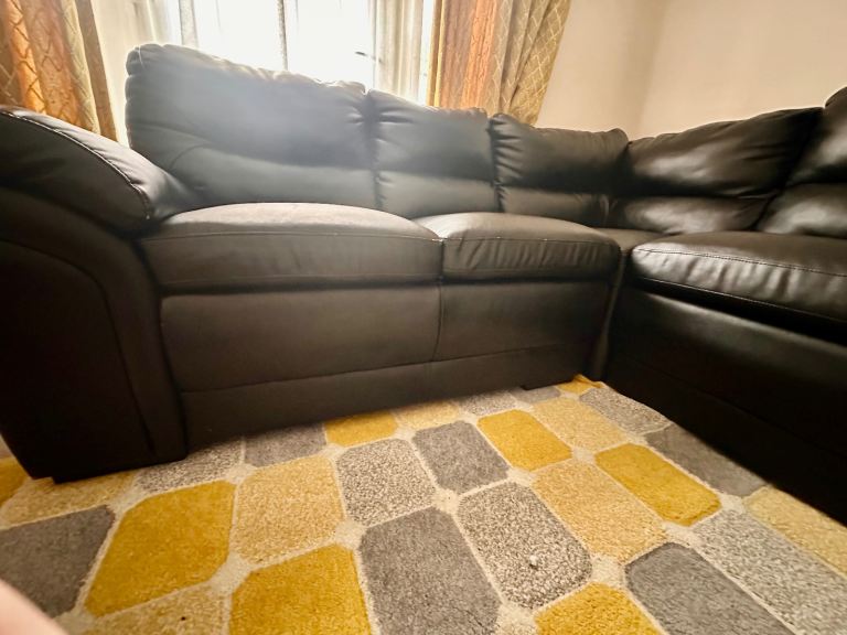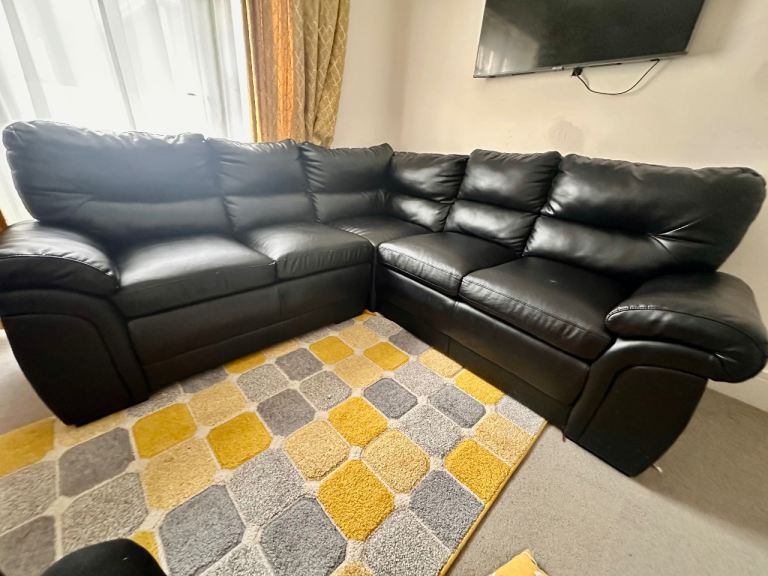 Corner faux leather sofa in black for sale.