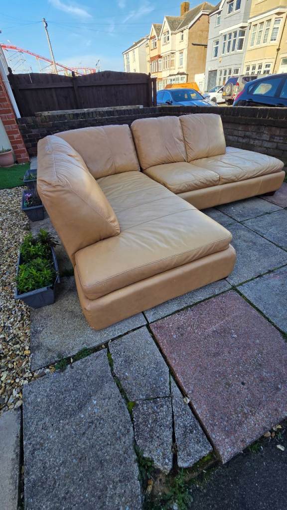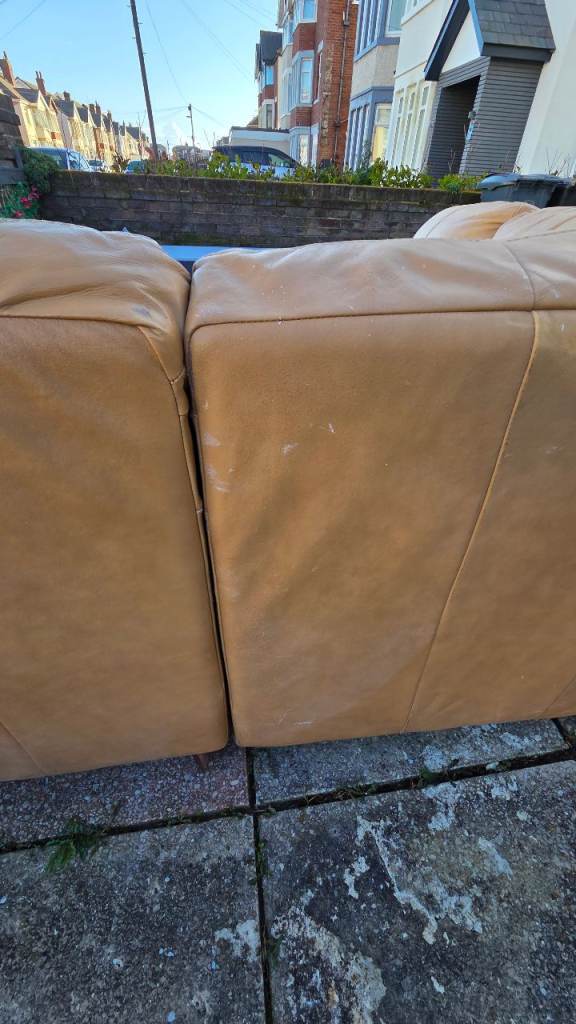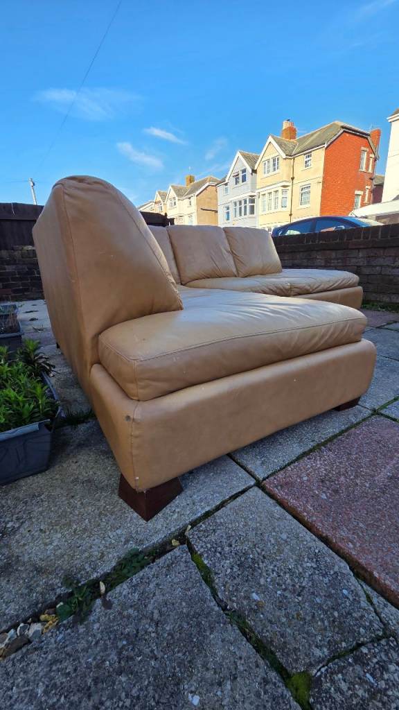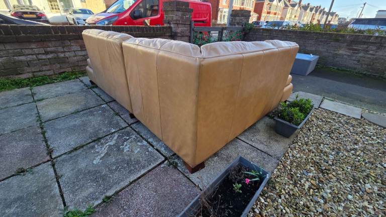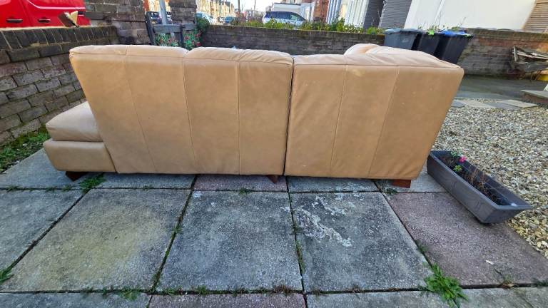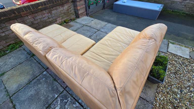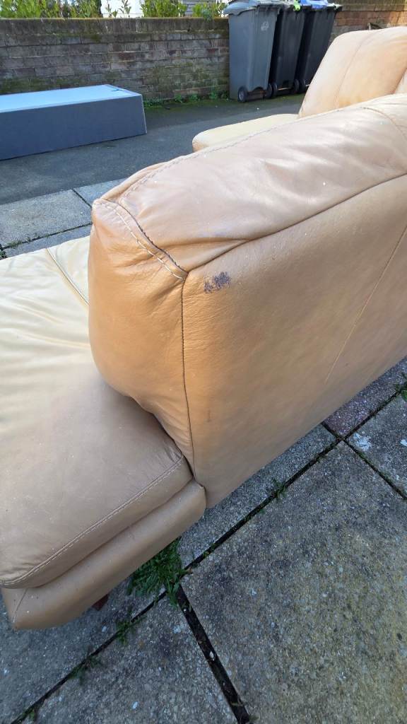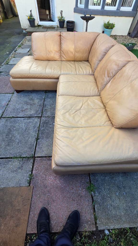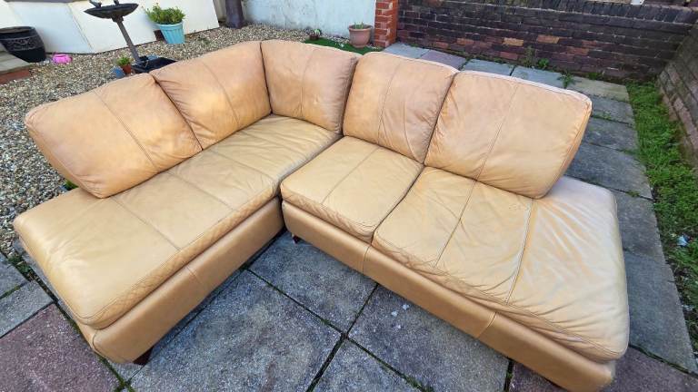 Corner sofa splits in two , gd condition just usual wear marks in leather and couple tiny marks here and there , comfy can deliver £25 extra