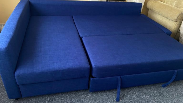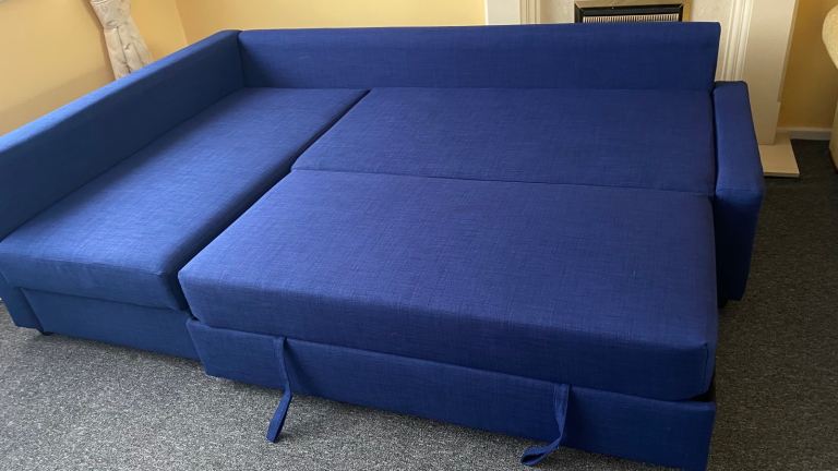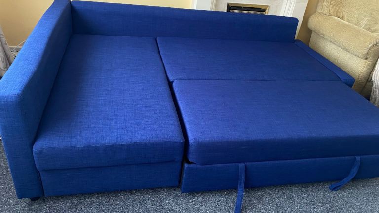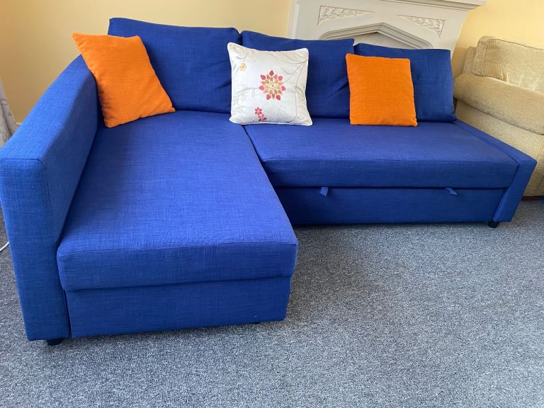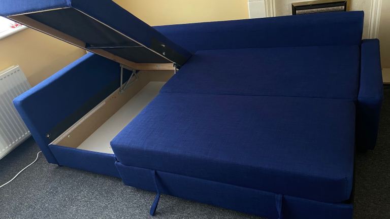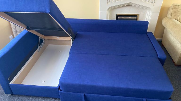 IKEA Corner sofa bed in excellent condition, with storage space, one year old, smoke-free home, measures 225 cm by 150 cm, h-65 cm, can deliver at extra cost (small pillows not included).