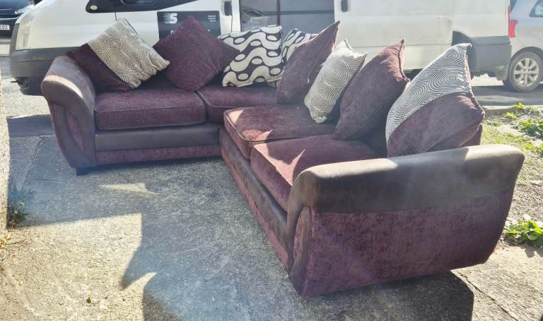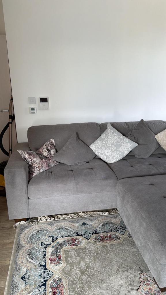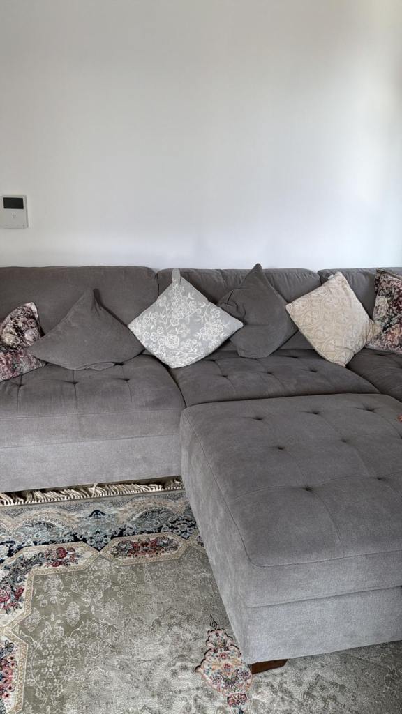 Thomasville Grey Fabric Corner Sofa with footstool ottoman with storage
