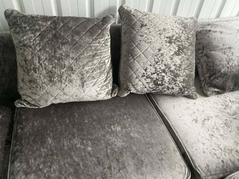 Nice velvet corner sofa , clean condition and very comfortable. Dimensions will be updated tomorrow. Sofa is currently in storage . Will go quickly, I can offer delivery in Glasgow free of charge. If you have stairs or live out of Glasgow extra charge applies . NO OFFERS