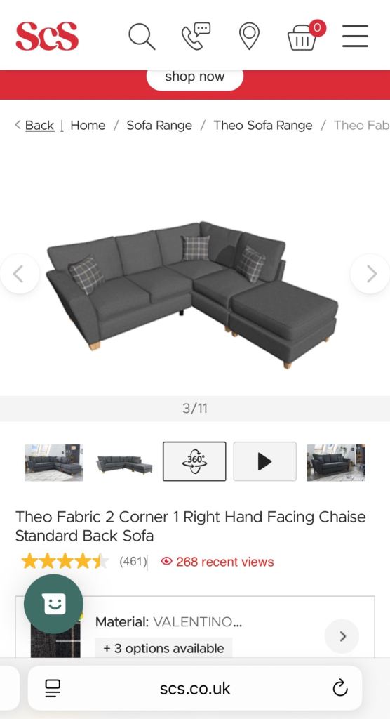 They don’t have the same colour anymore but you can find it on the SCS website if you search for Theo fabric 1 corner 2 right hand facing chaise standard back sofa