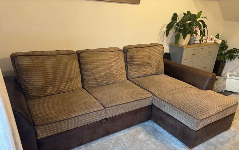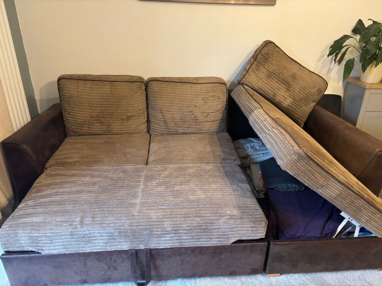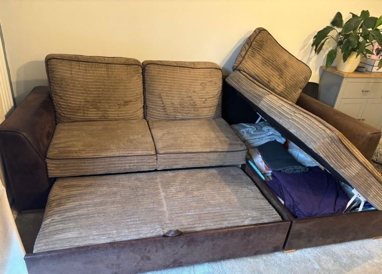 Corner sofa / chaise with good storage and easily makes into a double bed.
