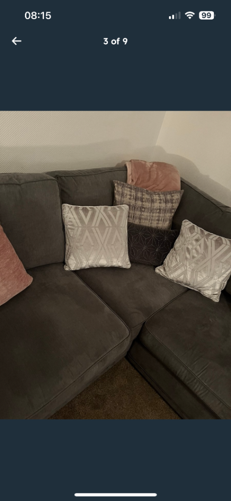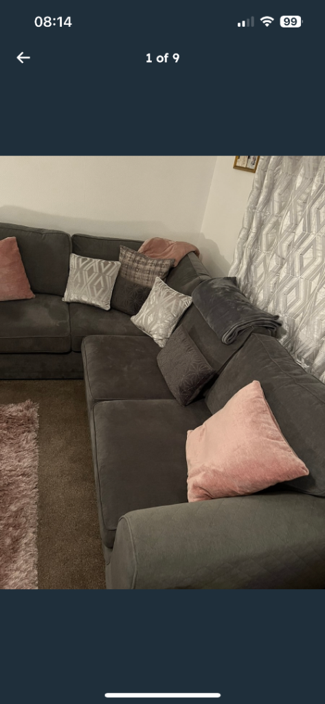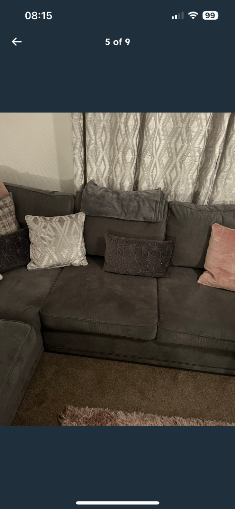 Lovely grey corner sofa, 2 years old, great condition, not much used, £700