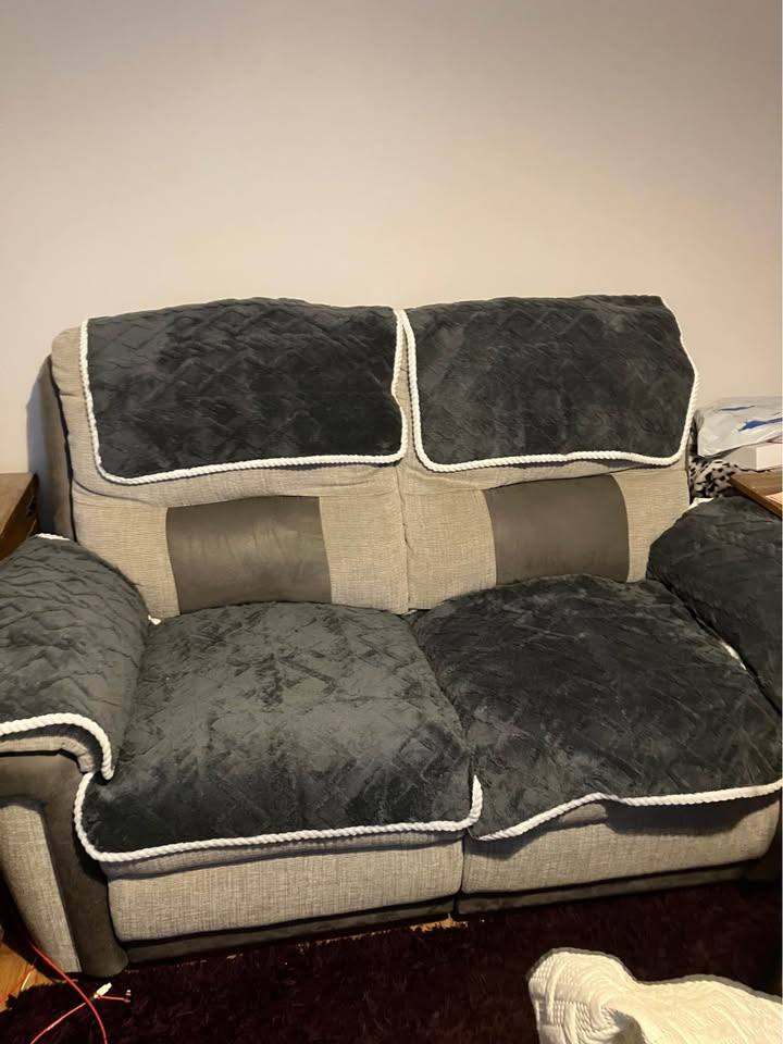 Brand new not been used ( but have washed and cut/ wonder webbed 2 large covers to allow for recliner sofas. But I forgot I can not touch super soft materials ha ha. Literally only put covers on the sofas to take the photos. ( See pics for cut down one , where you tuck into middle of sofa) . The 4 I cut down are roughly 2 x 29-30 inch x 30 inches and 2 bigger cut down ones are 40-41 inches x 31 inches roughly . 4 x arm rests roughly 30x 30 inches 4 x head rests roughly 30x 30 inches. In pics I have a large 3 seater and a 2 seater sofa, Brought for £55 selling for £30 ono ( price confirmed before collection. Collection only from cr00bu