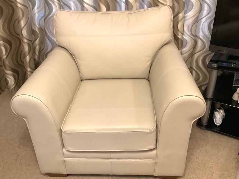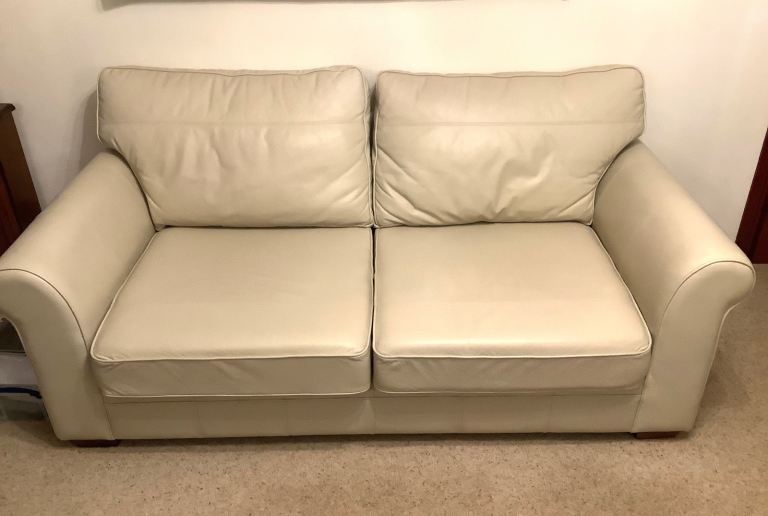 Cream 2 Piece Leather Suite - 3 Seater Sofa and Armchair