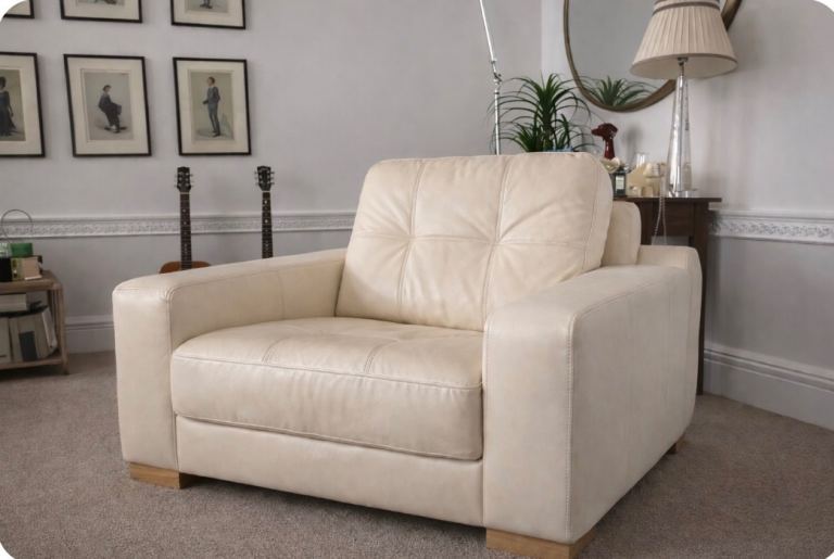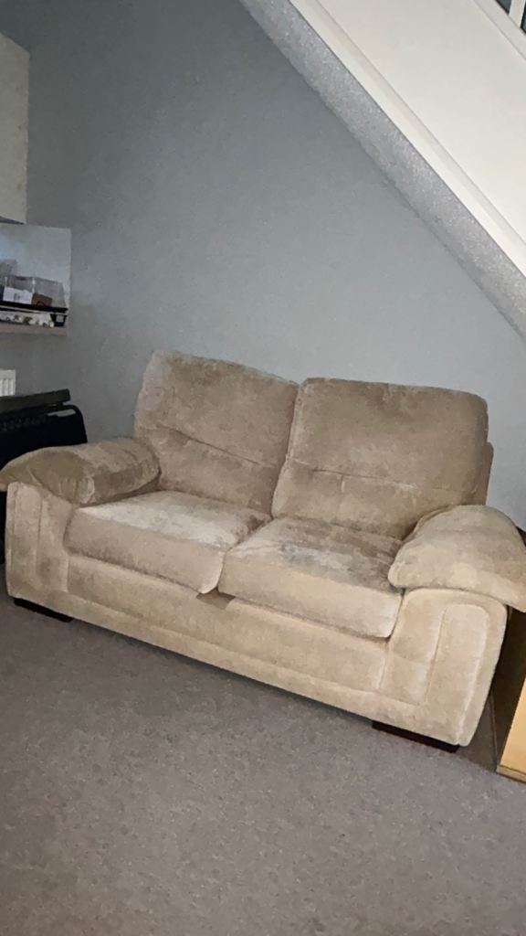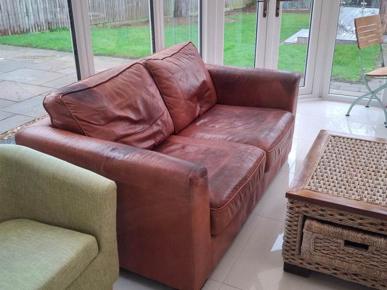 Posting for under a monthCream leather sofa & matching armchair – great condition