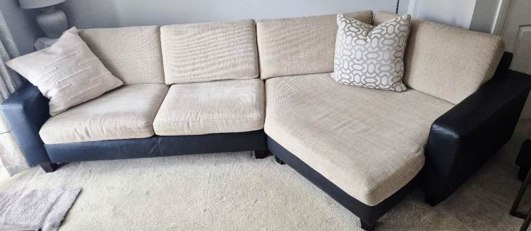 Posting for 5+ yearsCream Two Seater Sofa and Matching Footstool