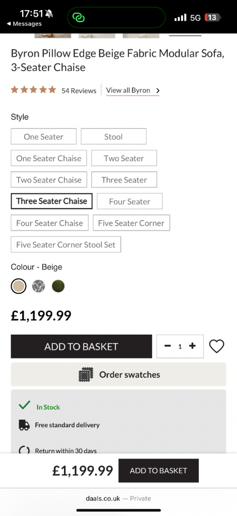 Selling a modern beige modular corner sofa with chaise. Comfortable, stylish, and neutral – perfect for most living rooms. The modular design allows flexible layout options.