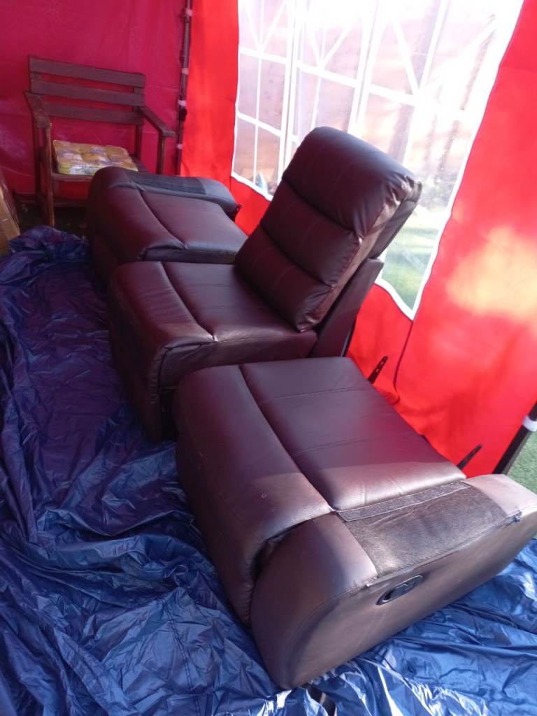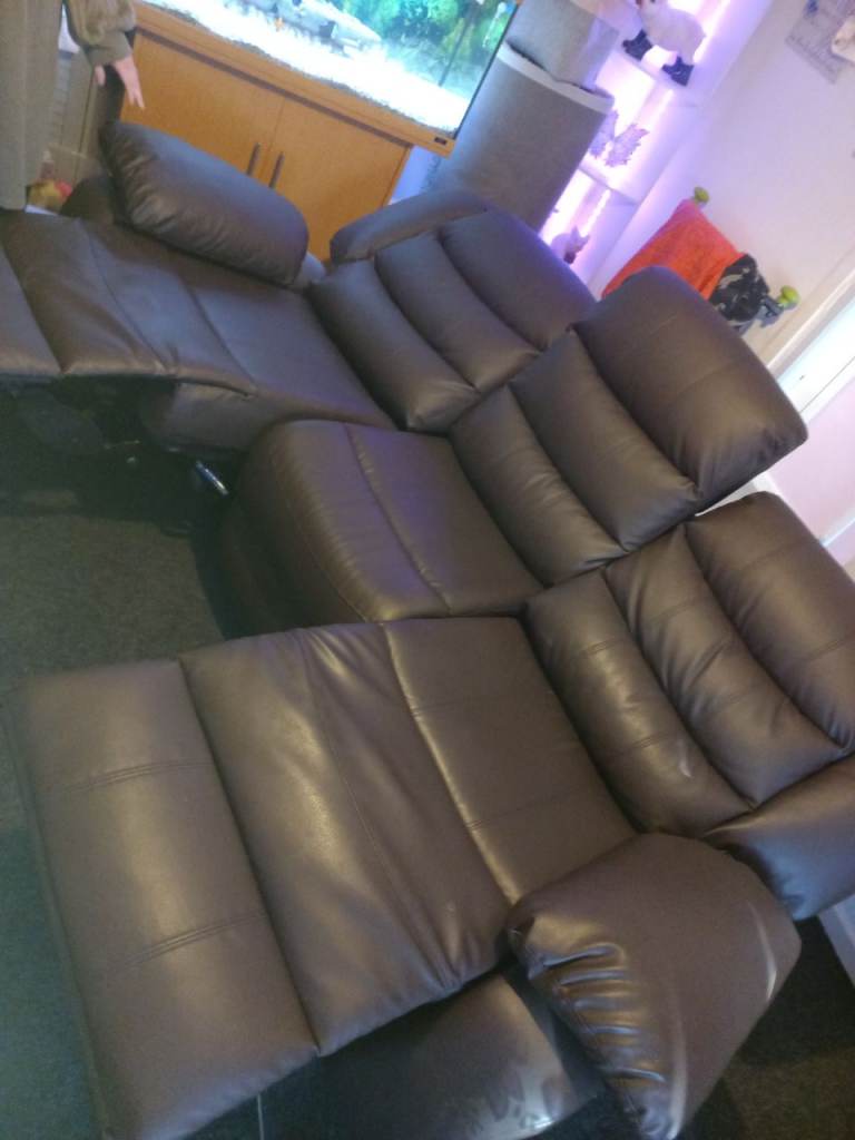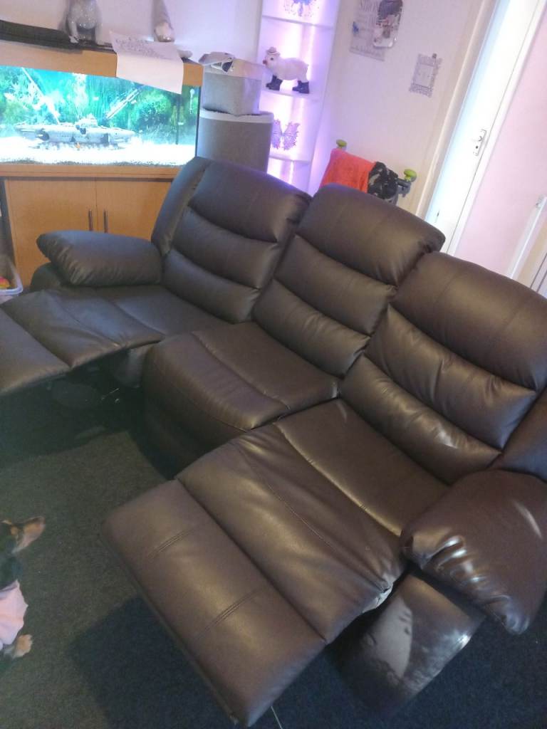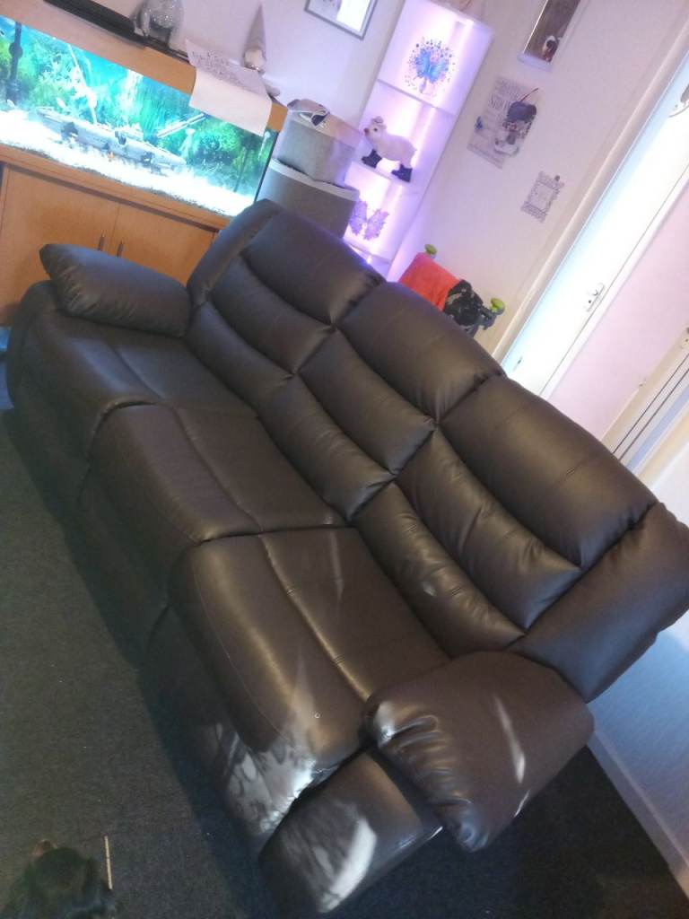 Dark brown leather manual recliner sofa.