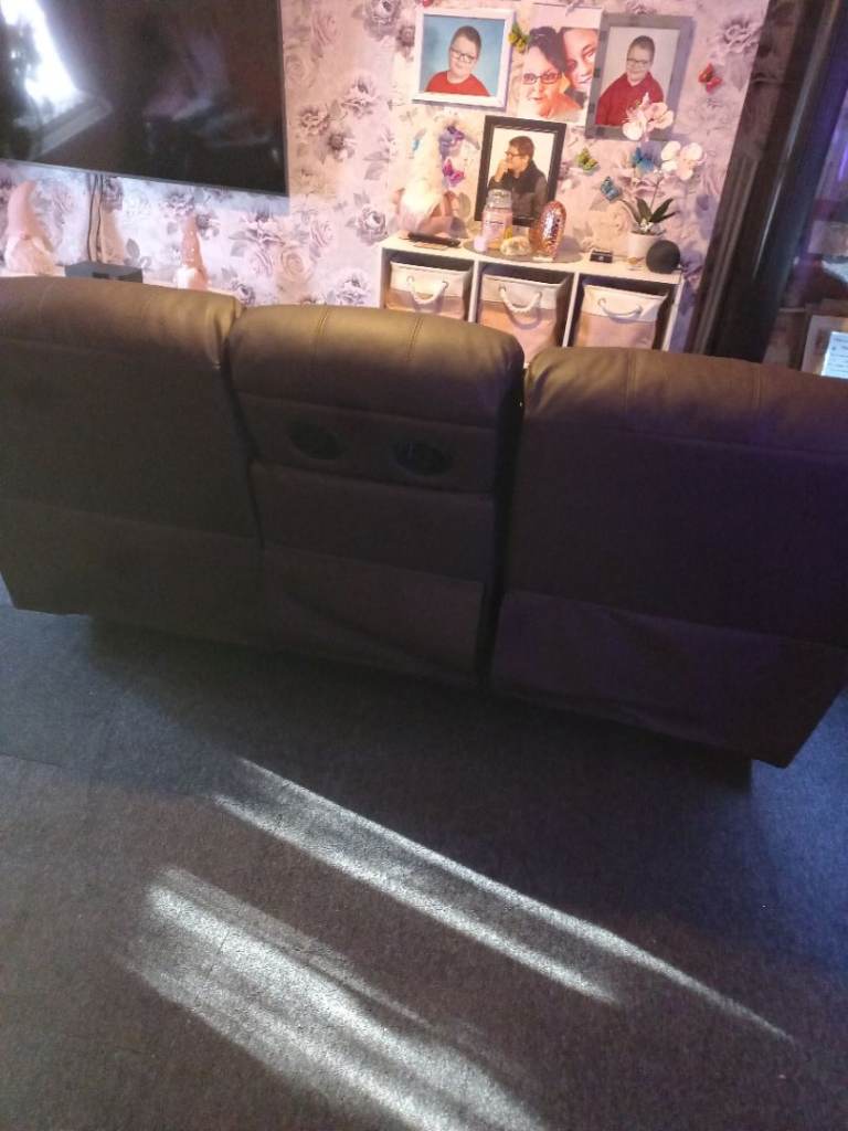 Posting for 2+ yearsDark brown leather manual recliner sofa.
