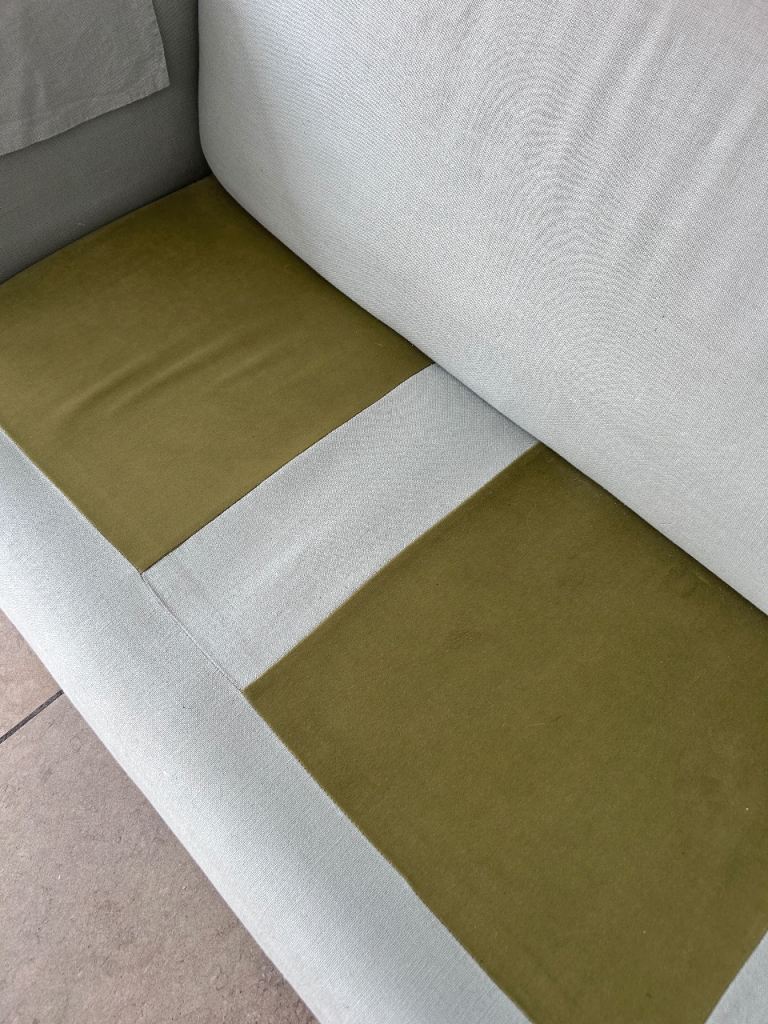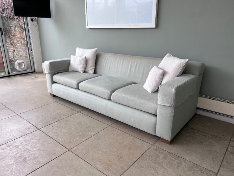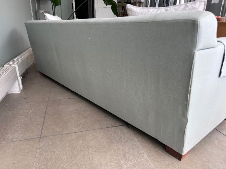 This is an original De La Espada sofa. Lovely mint green colour. Stylish. Modern. Showing some signs of wear.