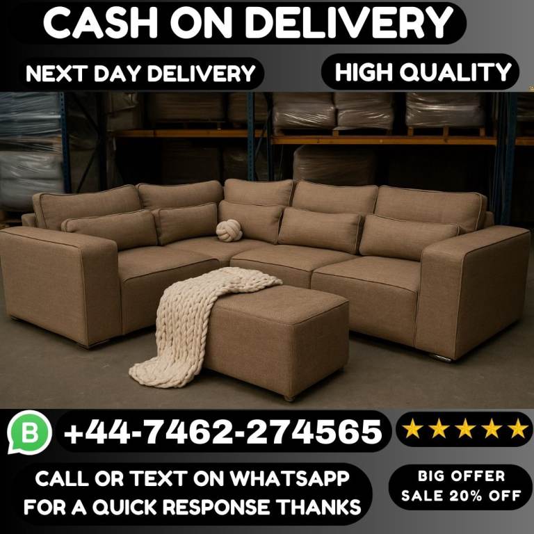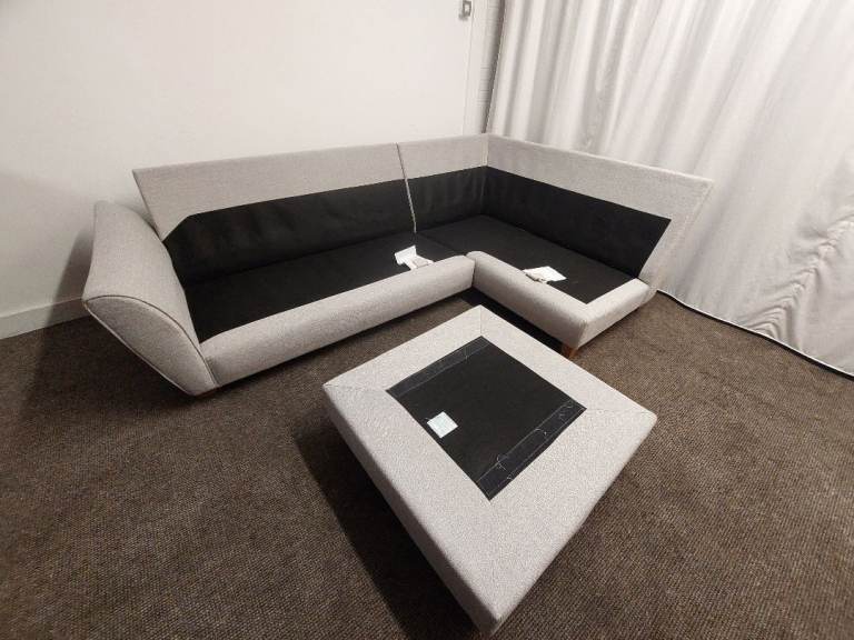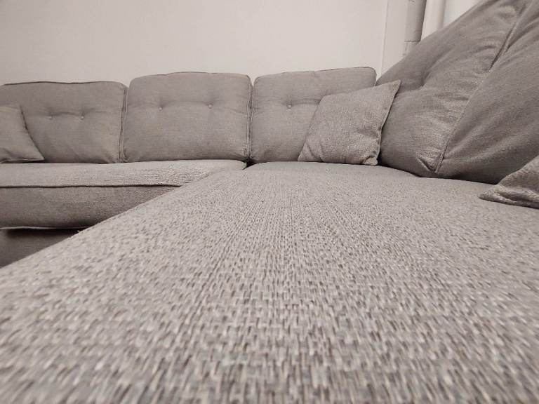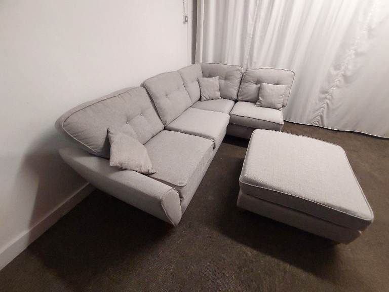 Delivery Available - Light Grey Oak FurnitureLand INCA Corner Sofa With Ottoman, Left Hand Chaise
