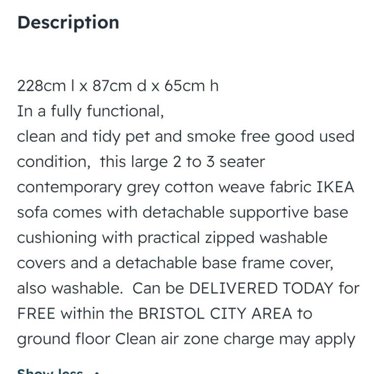 Can be DELIVERED for FREE within the BRISTOL CITY AREA to ground floor by MOVEUKW