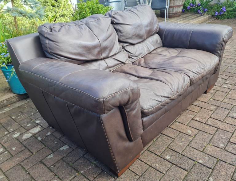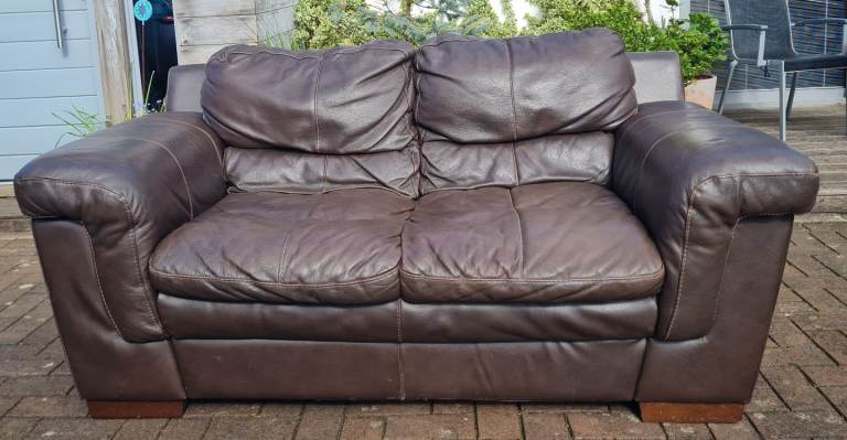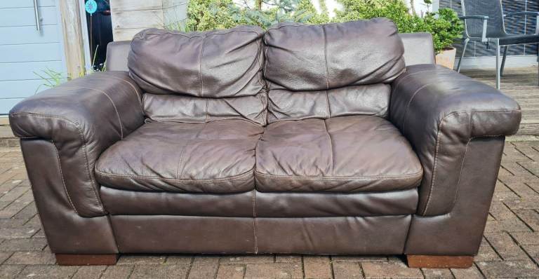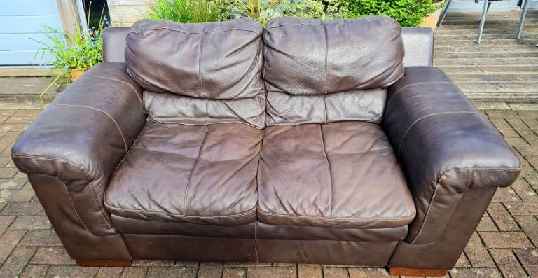 In a very good, clean and tidy, pet and smoke free fully functional condition this 2 seater dark brown genuine leather HIDE sofa comes with attached comfortable cushioning and smart wooden feet. Can be DELIVERED TODAY for FREE within the BRISTOL CITY AREA to ground floor Clean air zone charge may apply.