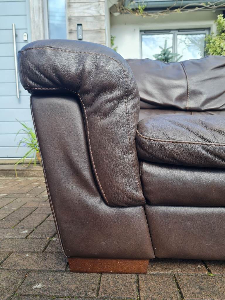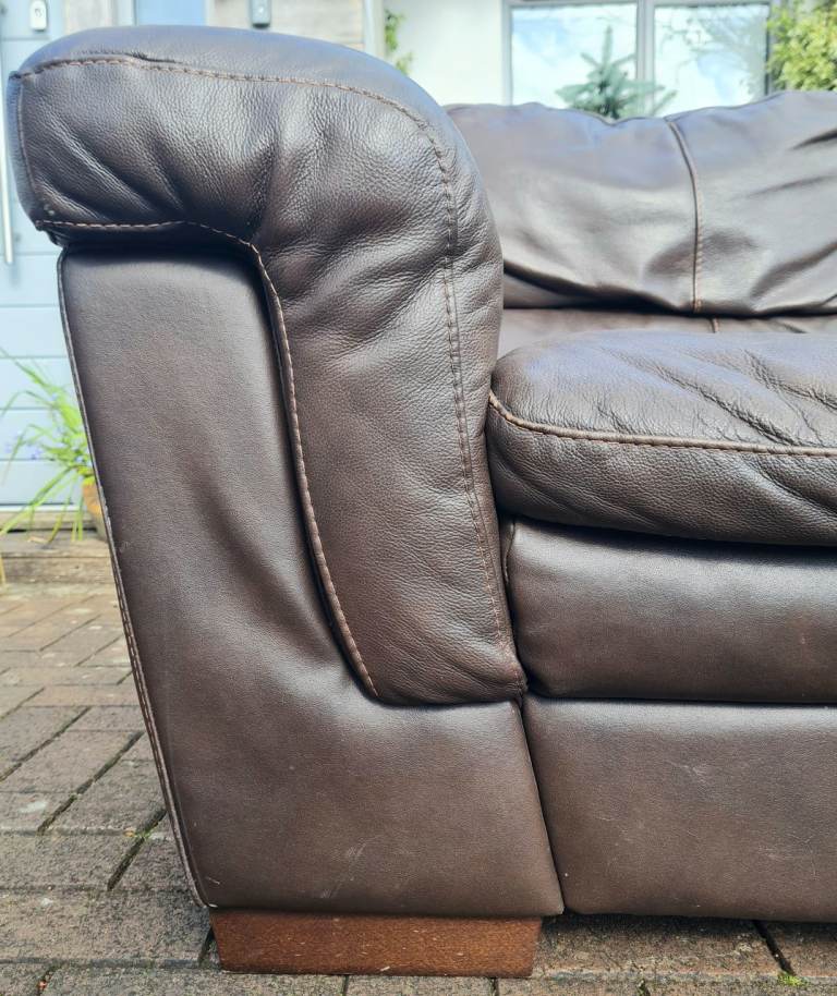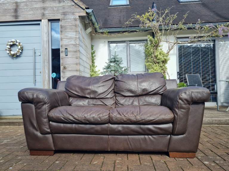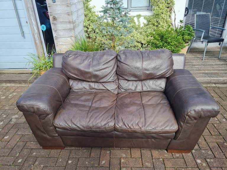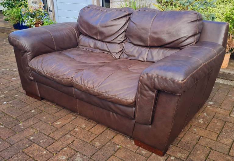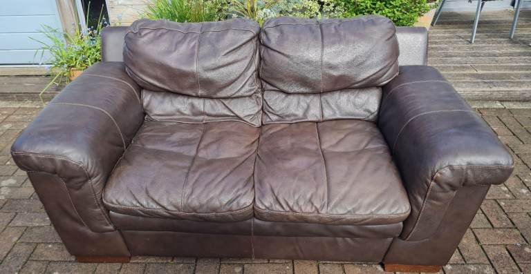 In a very good clean and tidy pet and smoke free fully functional condition throughout, this dark brown genuine leather 2 seater sofa come with very comfortable attached cushioning and smart wooden feet.